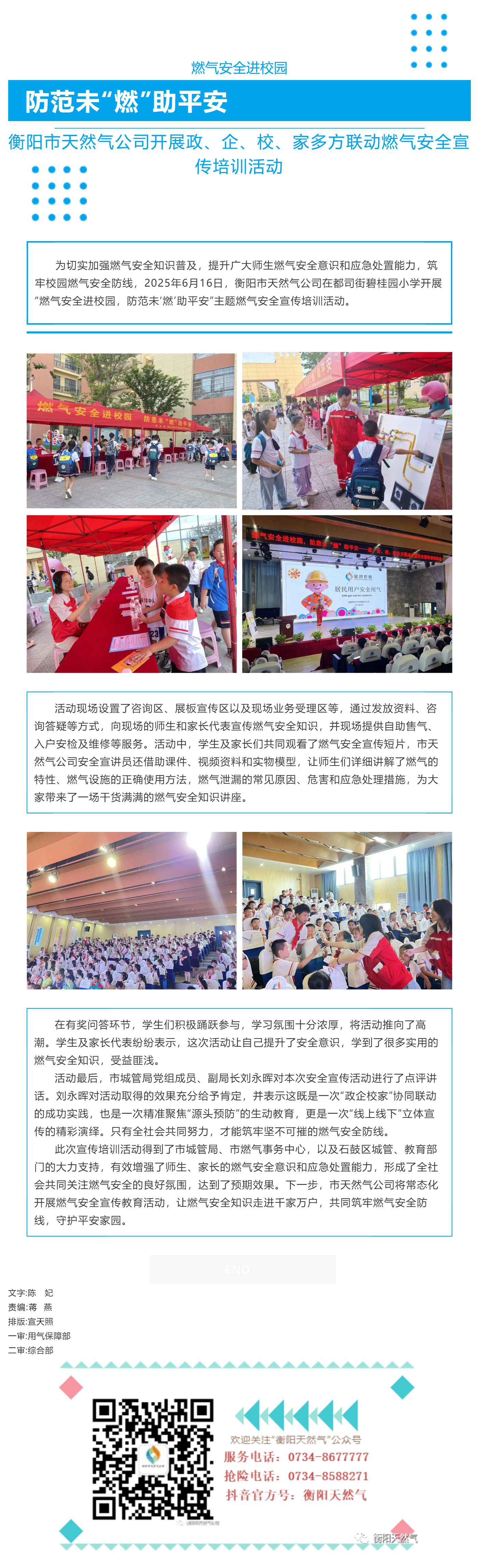 燃?xì)獍踩M(jìn)校園,防范未“燃”助平安 衡陽市天然氣公司開展政、企、校、家多方聯(lián)動(dòng)燃?xì)獍踩麄髋嘤?xùn)活動(dòng)